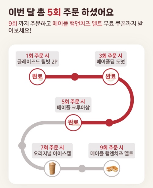 얼떨결에 팀스오더 다섯번째 주문이라, 메이플 크루아상 무료교환권도 받았네요.