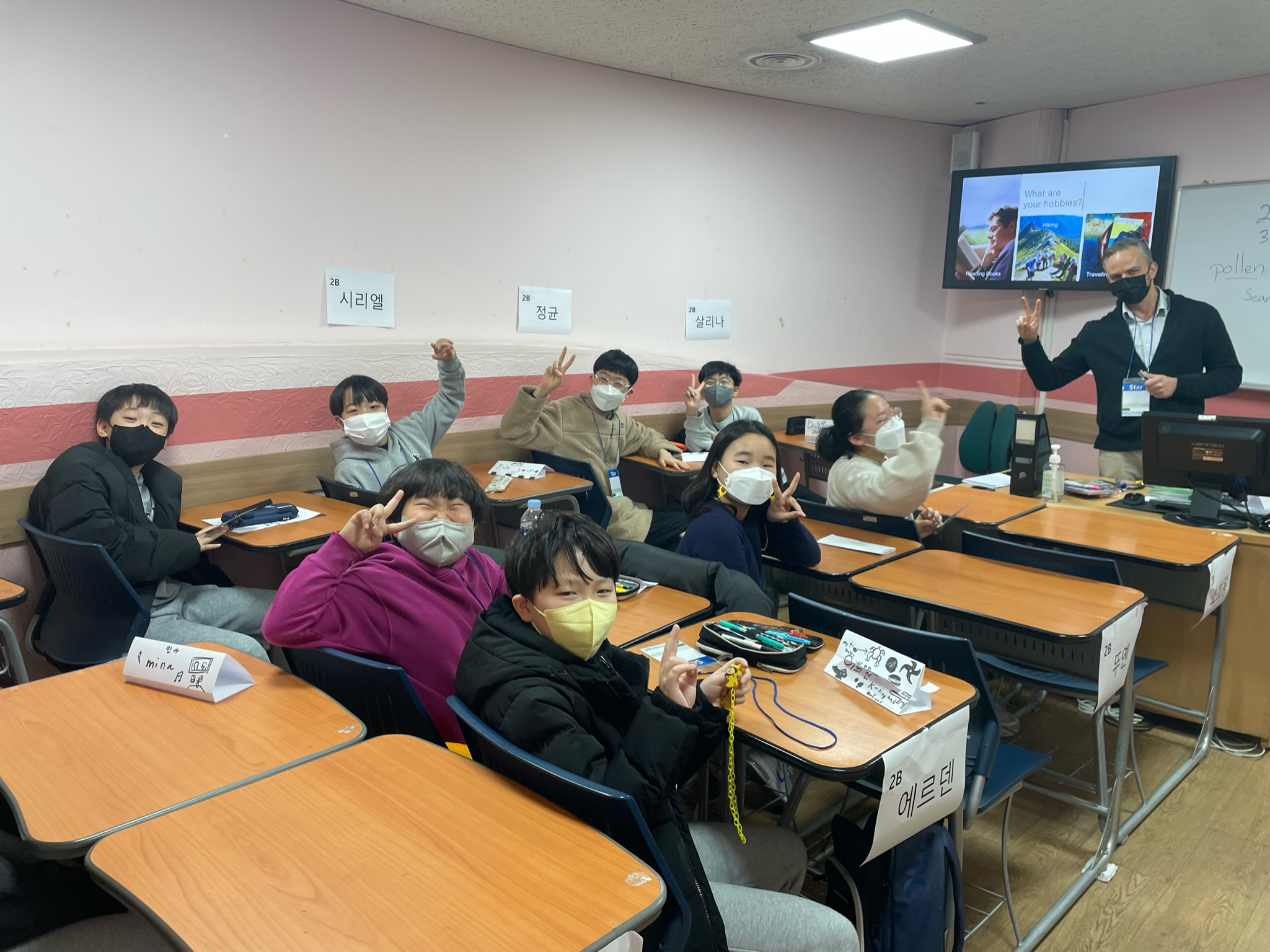 건국대 원어민 교사가 자연, 과학, 예술과 같은 일상생활과 밀접한 소재를 활용해 읽기, 쓰기, 말하기, 듣기 능력이 고루 향상될 수 있도록 교육합니다.