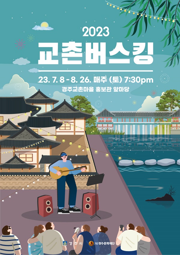 경주시가 여름철, 7월과 8월 매주 토요일에 '경주교촌 한옥마을 홍보관' 앞마당에서 야간 관광객을 위한 ‘2023 교촌버스킹’을 선보입니다.