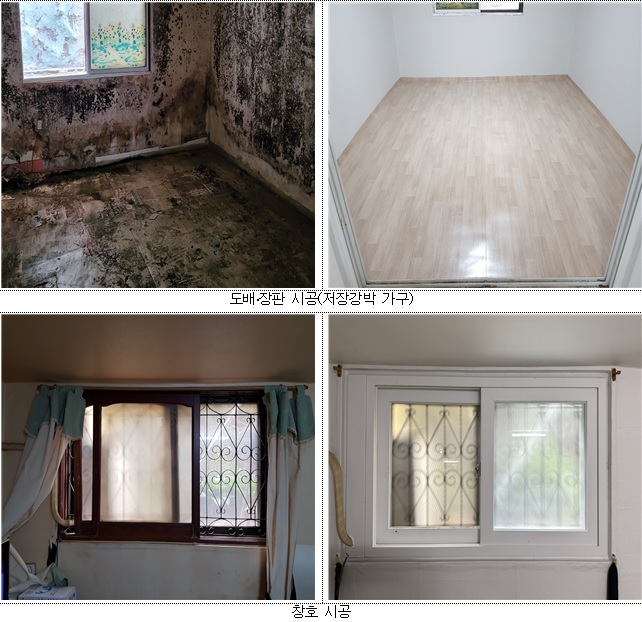 ○ 참고 사진 : 집수리 지원 사례 (시공 전(왼쪽) . 후(오른쪽) 모습)