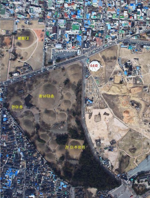 이렇듯 장신구의 구성(조합상)과 재질 등을 고려했을 때, 44호의 주인공은 신라 돌무지덧널무덤(적석목곽묘) 축조기의 최상층(왕족)으로 추정되며, 장식대도가 아닌 은장식 도자(刀子:작은 손 칼)를 지닌 것으로 보아 여성일 가능성이 높습니다.