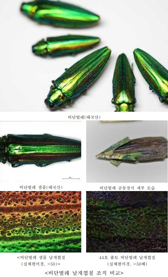 * 비단벌레: 딱정벌레목 비단벌레과에 속하는 곤충으로 녹색 또는 금록색 광택이 나는 성충의 앞날개를 이용하여 각종 장식에 사용