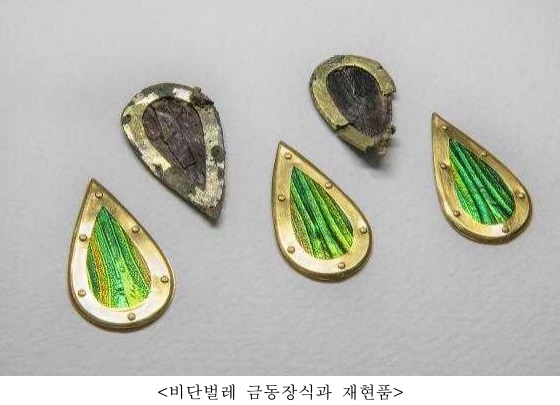 비단벌레 딱지날개로 제작된 금동 장식 수십 점,