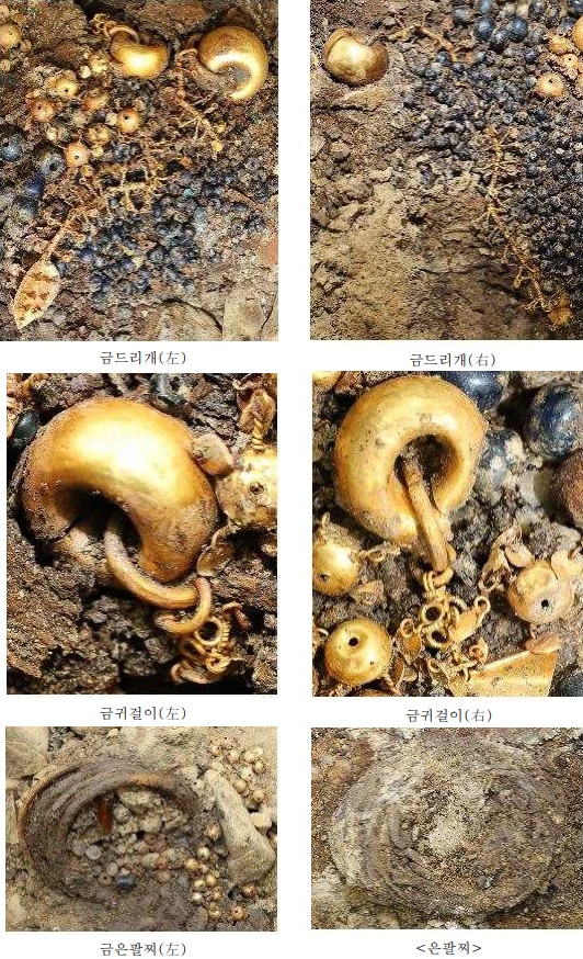 금동관과 은허리띠 장식은 현재로선 정확한 문양과 형태를 파악하기는 어렵지만, 추후 보존처리를 통해 정확한 내용을 파악할 수 있을 것입니다.