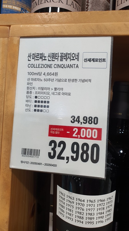 이태리 뿔리아 지역에 있는 산 마르짜노 양조장 설립 50주년을 기념해서 만든 적포도주.