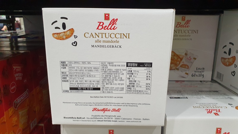 한 상자에 10그램짜리 작은 봉지 60개가 들어 있어서, 소량씩 가볍게 먹을 수 있는 이태리 과자입니다.