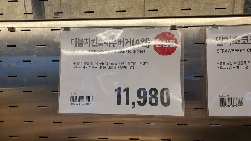 신상품 '더블치킨버거 & 새우버거' 4개입