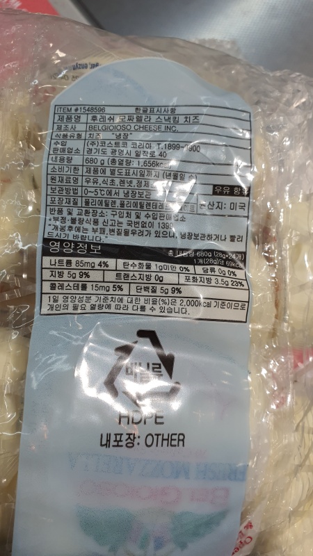 한입 크기로 포장한 모짜렐라 치즈입니다.