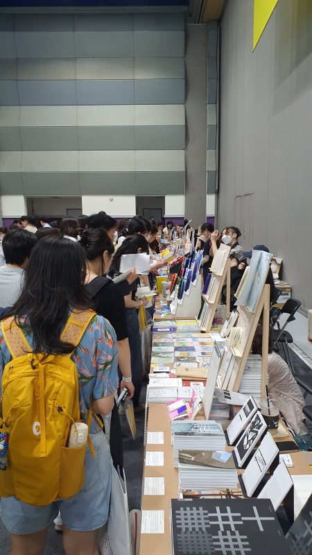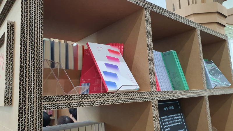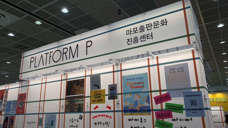 독립출판 관련 회사가 장터처럼 판매대를 운영하는 공간입니다.