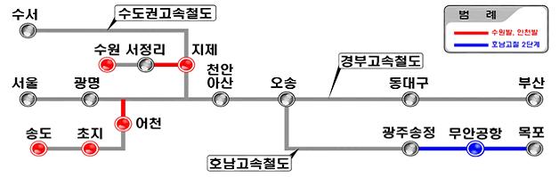 신규 고속철도 사업을 통해 고속철도의 이용에 어려움이 있던 인천, 경기 서남부권 및 중부권, 전라남도까지 고속철도의 수혜지역이 크게 확대됩니다.