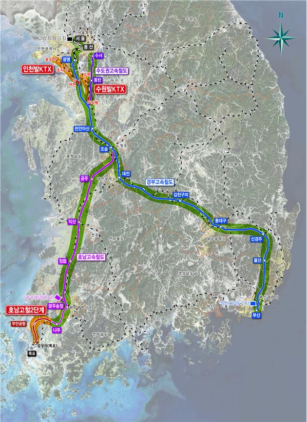 ◎ 호남고속철도 및 인천발.수원발 KTX 노선도
