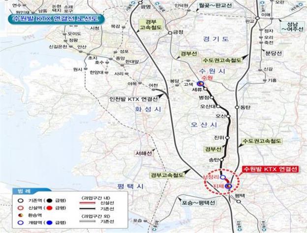 한편, ‘수원발 KTX 직결사업’은 경부선과 수도권고속철도를 연결하여 고속철도 서비스 접근이 어려운 수원을 비롯한 수도권 동남부지역에 고속철도 서비스를 확대하기 위한 사업으로, 총 사업비는 2,772억 원(기존선개량 국고100%, 신설 국고50%, 철도공단50%) 투입됩니다.