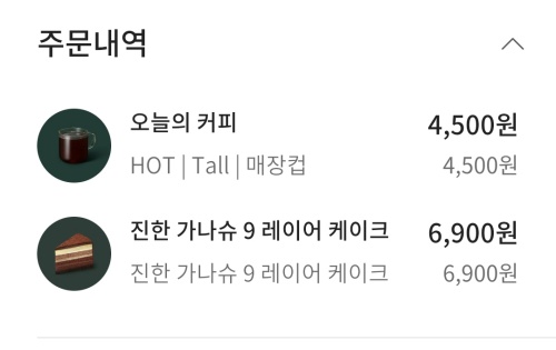 가격은, 오늘의 커피 기본(Tall) 용량 4,500원.