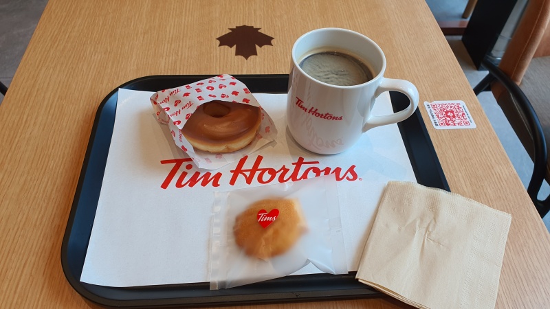 메이플 딥 도넛(2,300원)은 '캐나다 커피하우스'라는 명칭에 걸맞는, 팀홀튼의 간판 도넛입니다.