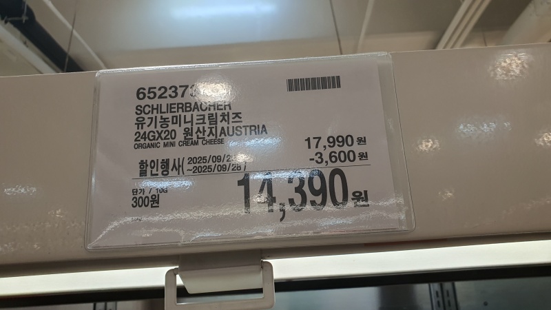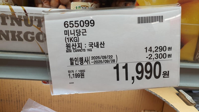 1킬로그램 일반가격이 14,290원인데, 9월 28일까지 행사가는 11,990원.
