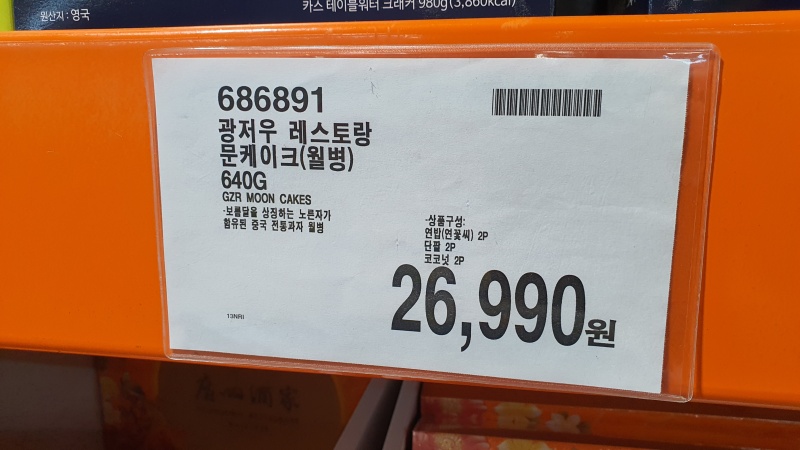 차이나타운같이 중국인(화교)들이 많이 사는 동네에서 사 먹을 수 있는 월병 가격을 생각하면 그리 비싸지는 않다는 생각이 듭니다.^^;