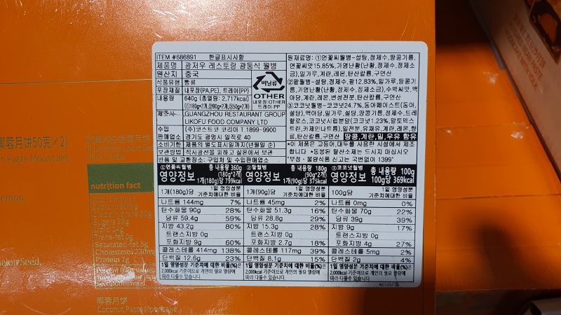 제품정보를 보니 세 가지 월병의 크기(무게)와 모양이 다르네요.