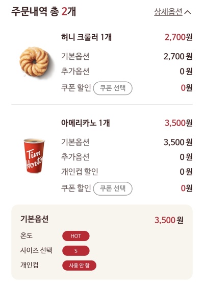 팀빗은 팀홀튼이 우리나라에서 영업을 시작한 이후, 기본 단위가 최소 2개, 추가하면 2의 배수로만 주문이 가능했습니다.
