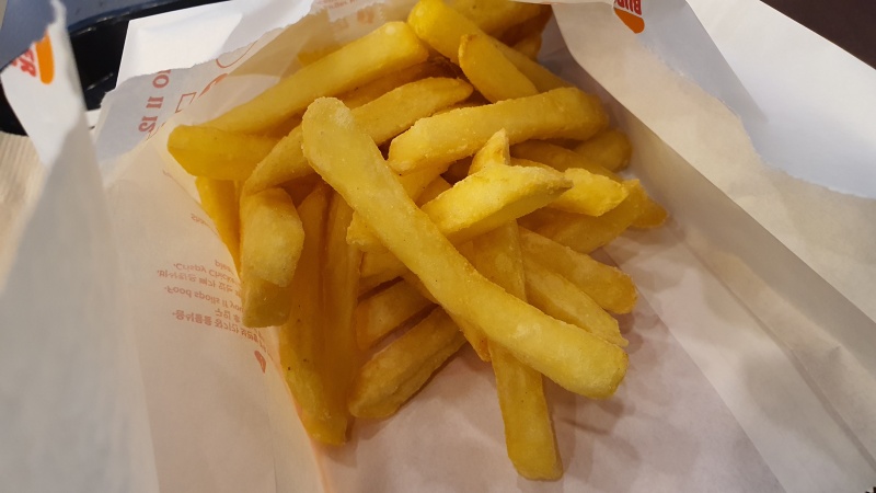 감자튀김 두께는 다른 곳(맥도날드, 롯데리아 등)보다 두꺼운 편이에요.