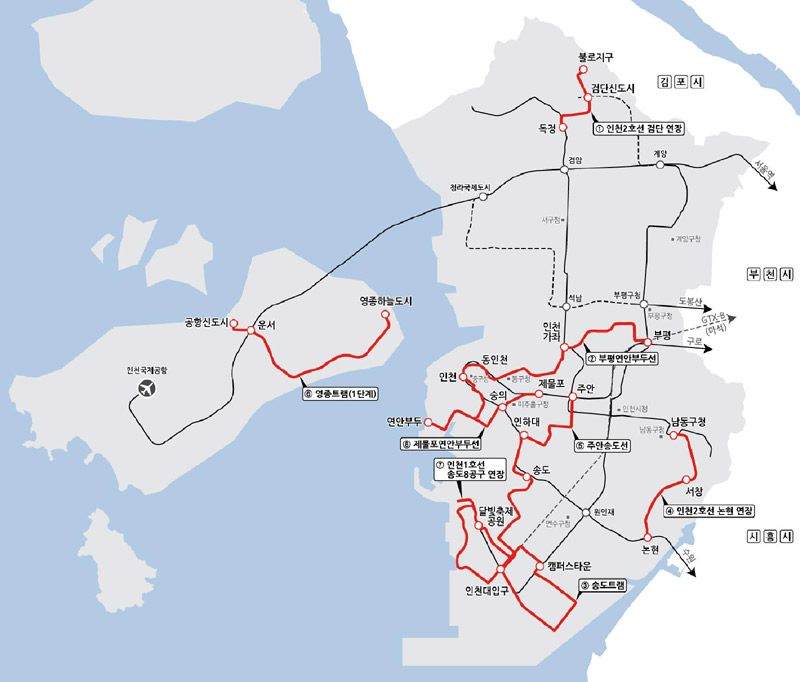 ※ 후보노선 : 인천1호선 국제여객터미널 연장, 동인천청라선, 영종트램 전 구간, 자기부상철도 장래 확장