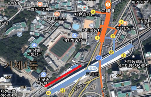 연제구 거제1동 법조타운에서 동해남부선 교대역 일원을 연결하는 보행로가 개설되어 지역주민 및 방문객들의 이동이 좀 더 수월해 질 전망입니다.
