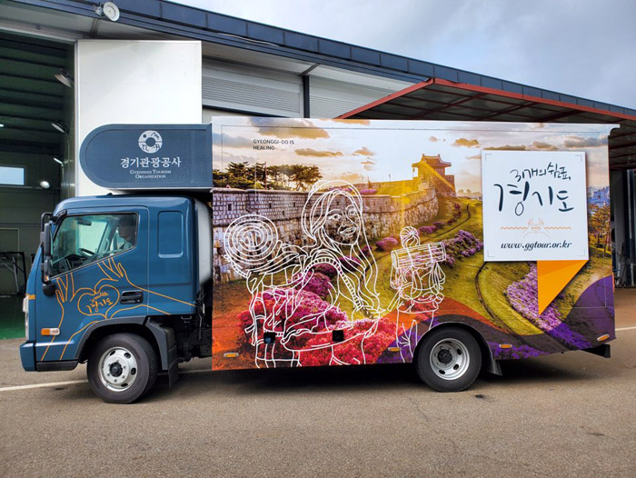 경기관광 홍보관은 특수 제작된 트럭(차량)을 이용하여 각 지역을 방문해 홍보영상을 상영하거나 홍보부스를 설치해 관광안내책자를 배부하는 일종의 이동식 홍보관입니다.