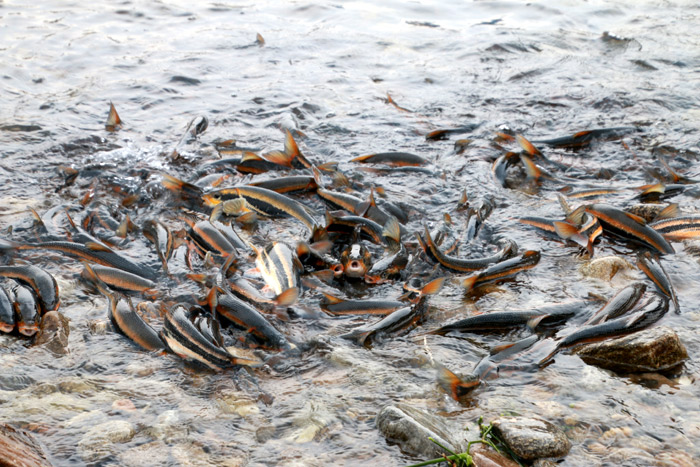 산란기를 맞은 황어가 양양 남대천으로 올라오며 그 모습이 장관입니다.