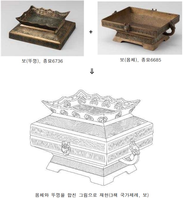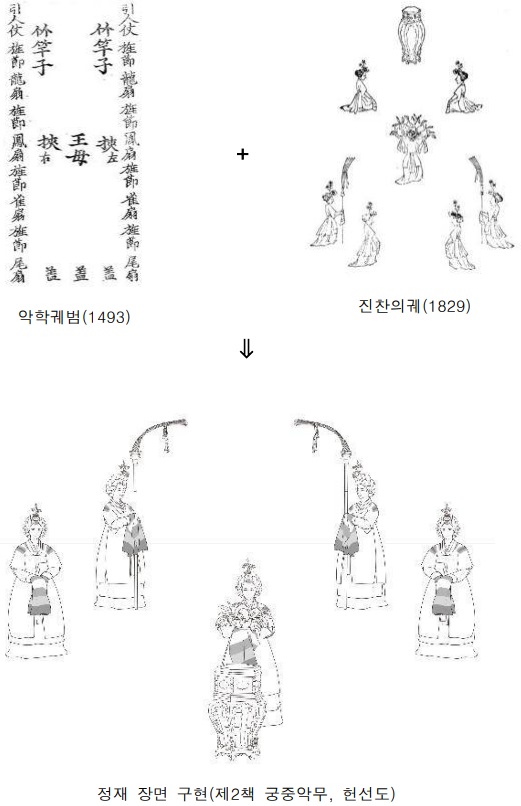 또한, 제례에 사용된 제기의 상차림이나 궁중 행사에 선보이던 악기 연주와 무용 장면 등을 시각적으로 보여주고자 옛 문헌의 기록과 현존 유물, 전문가 자문 등을 바탕으로 정밀하게 고증하여 그림으로 복원하였습니다.
