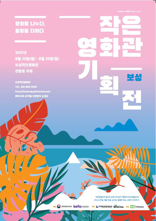 보성작은영화관이 8월 23일부터 29일까지 7일간, ‘2021 작은영화관 기획전_보성’을 개최합니다.