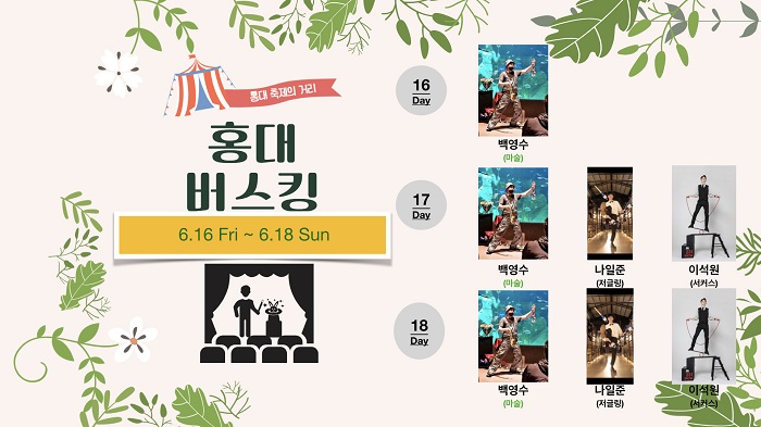 6월 17일(토) 백영수(마술), 나일준(저글링), 이석원(서커스)