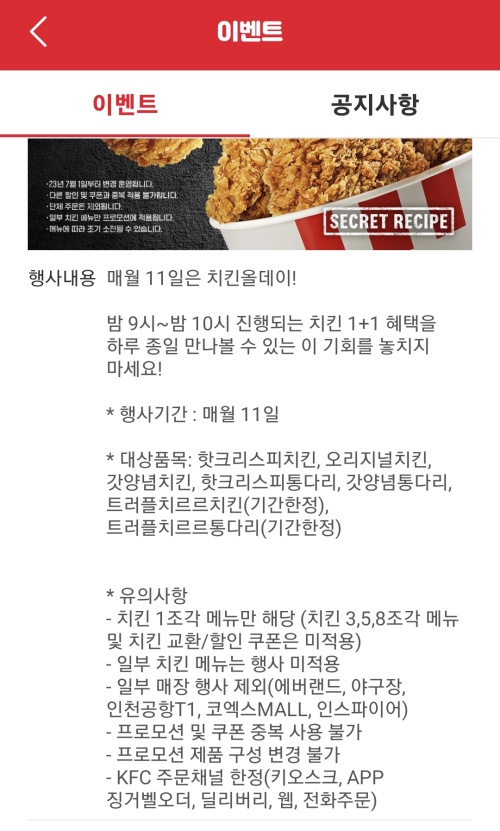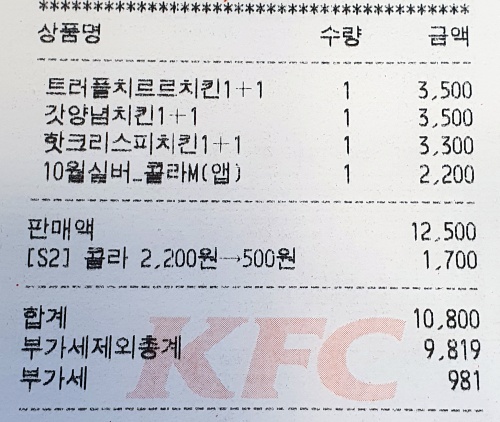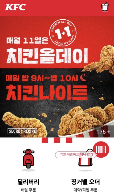 | 2025년 10월 11일 KFC 1+1 치킨올데이 식사 후기 (1) | 2025.10.11 |