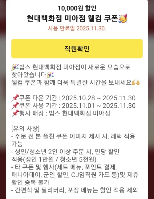 | 구파발역 빕스 은평롯데몰점 2025년 10월 매니아데이 식사 후기 (0) | 2025.10.26 |